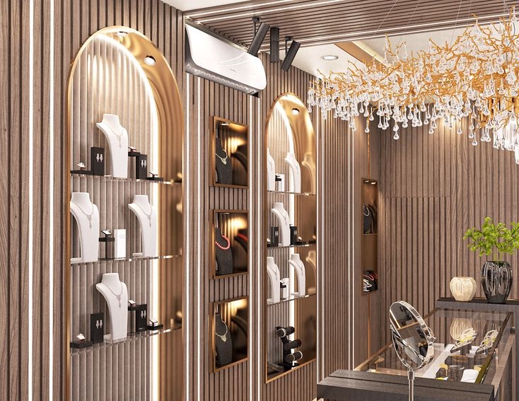 شرکت مهرطلایی آرایه مقدم، با داشتن بیش از پانزده سال تجربه در طراحی داخلی انواع گالریهای طلا و جواهر، بهعنوان یکی از برترین شرکتهای طراحی دکوراسیون داخلی طلا و جواهر فروشیها شناخته میشود. برای تجهیز، طراحی و دکور فروشگاه طلا و جواهرات خود با ما تماس بگیرید. گروه طراحی ویترین طلا و جواهر مقدم افتخار دارد که در سرتاسر کشور، از جمله زیباترین ویترینها را بهکمک مرغوبترین و جدابترین مانکنها و استندهای ساخت خود طراحی کرده است؛ ما همچنین مفتخریم تا کارآمدترین و بهروزترین استندهای طلا و جواهر، و همچنین انواع مانکنهای متفاوت و منحصربهفرد را برای هرچه زیباتر دیدهشدن جواهرات فروشگاه شما ارائهدهیم. گفتنی ست که ما در گروه مقدم مانکن از صفر تا صد تمامی آنچه میباید برای تجهیز و راهاندازی یک گالری طلا و جواهر به کار بسته شود را برای فروشگاه شما به بهترین و بهروزترین شکل ممکن انجام خواهیم داید؛ حتا اموری از قبیل: تخریب و مسلح کردن دیوارها، بتنریزی، نمای سقف کاذب، انواع کفپوشها و دیوارپوشها از قبل سنگ و پارکت، و رنگ و کاغذ دیواری؛ انواع گاوصندوقها و خزانههای طلا و جواهر، دزدگیر و دوربین مداربسته، مهپاش و انواع تابلوهای طلا و جواهر فروشی؛ همچنین گفتنی ست که ما در طراحی ویترین و دکور داخل فروشگاه نیز هیچگونه محدودیتی نداشته و متریالهای مختلفی از قبیل چوب و فلز و امدیاف، و همچنین مرغوبترین پارچههای ترک و ایرانی را به کار خواهیم گرفت.
