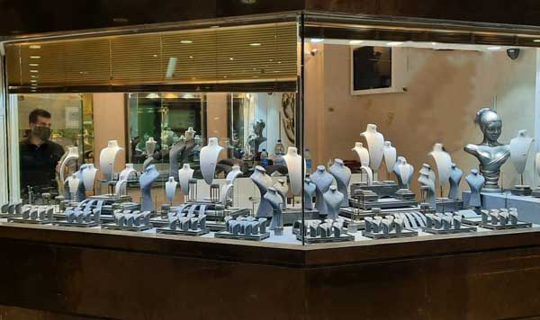 ویترین، دکور، وسایل زینتی و جلوه های نورپردازی طلافروشی از اجزای اصلی هویت مغازه هستند.