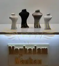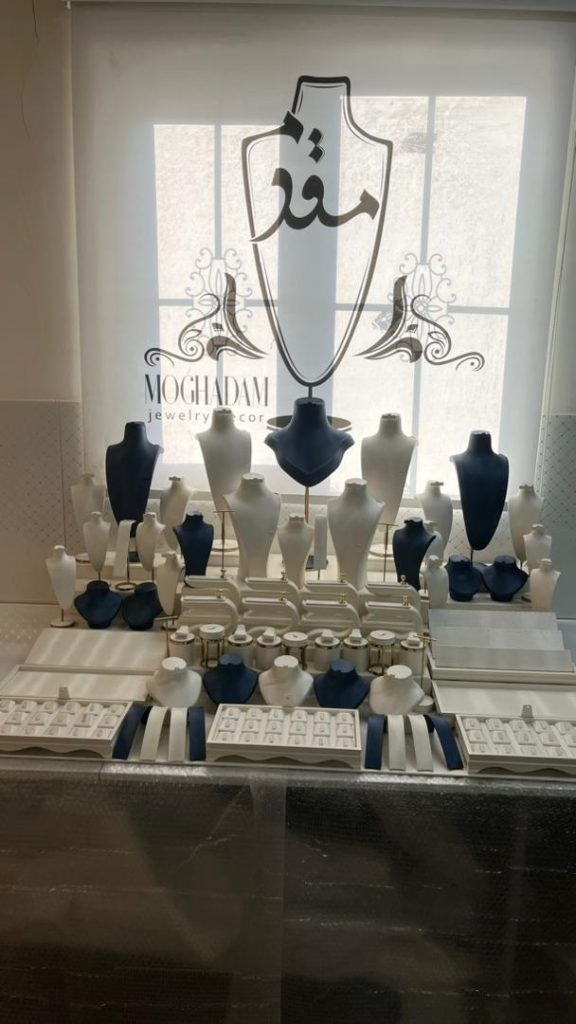 بهتر است با توجه به رنگ ویترین و رنگ طلا، مانکن نیم ست را انتخاب کرد.